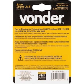 Conteúdo da embalagem: 1 Bico Leque 215 0,38mm 10-15 Cm Para pistola Airless Vonder