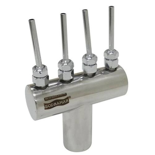 O Bico Leque está disponível nas versões com 4 e 6 saídas ambos tem 38 mm de diâmetro e entrada rosca de 1 BSP.