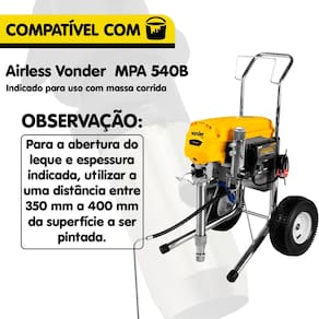 - Uso com Massa Corrida em máquinas de pintura Airless VONDER, Modelo MPA 540B.