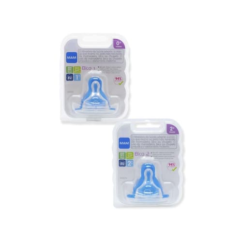 Bico mamadeira compativel com todas mamadeiras mam skinsoft embalagem dupla Tamanho: bico 1 0+ / bico 2 2+ o ministério da saúde adverte: a criança que mama no peito não necessita de mamadeira, bico ou chupeta. O uso de mamadeira, bico ou chupeta prejudica o aleitamento materno. Válvula de ar estrategicamente localizada na lateral do bico para um fluxo regular. Compatível com todas as mamadeiras mam e com o copo trainer+ Ce-pur/iqb 000153 nbr 13793/2012 - ocp 006