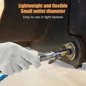 características: 1. Design sem vazamentos: mandíbulas atualizadas e juntas de vedação premium evitam vazamentos mesmo sob pressões extremas de 10. 000 psi, garantindo serviço de longo prazo e desempenho estável. Nenhum resíduo gorduroso em qualquer lugar. 2. Boa mola: a mola funciona bem e garante um deslizamento suave durante todo o seu ciclo de vida. 3. Punho duplo: design de punho duplo, economiza esforço ao lubrificar. A textura delicada do cabo garante o atrito com a palma da mão e evita escorregões acidentais. 4. Fácil de usar: o acessório da ferramenta de graxa pode ser travado e liberado de forma rápida, fácil e conveniente. 5. Adaptabilidade: o diâmetro da rosca é de 10mm, adequado para os modelos m6, m8, m10, m12, m14, independentemente da máquina de injeção de graxa manual, elétrica ou pneumática. 6. Acoplador de graxa de alta pressão: é uma ferramenta muito conveniente para aplicar lubrificantes e graxas em várias partes mecânicas ou móveis. Eles são amplamente utilizados por mecânicos, engenheiros e amadores. Encaixe de graxa de alta pressão, adaptador de mangueira de graxa de conexão rápida