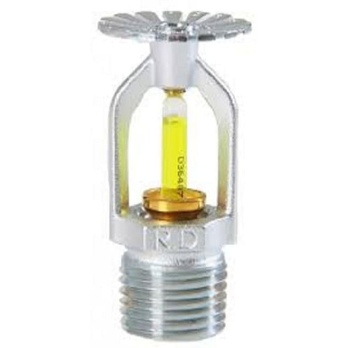 Bico Sprinkler Combate Incêndio Pendente 79°C 1/2 Sprinklers chuveiros automáticos utilizados na extinção de incêndio, através do disparo imediato a uma temperatura de 68ºC. As ampolas contém um líquido altamente expansível, a pressão criada pela expansão do líquido rompe a ampola, dando saída para a água, que é se espalha em forma de chuva sobre o foco do incêndio. Posição: Pendente Cobertura: Padrão Diâmetros: 1/2 Acabamento: Natural ou Cromado Ean: 9995552598079