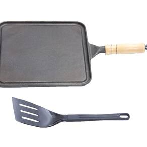 Bifeteira Antiaderente Quadrada Lisa 23x23cm E Espátula Bifeteira Antiaderente Quadrada Lisa 23x23cm e Espátula Fabricado em alumínio antiaderente, não enferruja, não quebra, é de fácil limpeza, mais higiênico, qualidade e durabilidade, se bem cuidados duram a vida toda. Ideal para o dia a dia, para campings, fazendas, acampamentos, restaurantes, pesque pague e até mesmo residencial. Leve esta facilidade para sua casa. Qualidade imensurável. O revestimento interno antiaderente evita que o alimento grude mesmo com uso reduzido de óleo e facilita a limpeza. Já vai com a espátula de . Características Bifeteira: Material: Alumínio Antiaderente. Diâmetro: 23x23cm. Peso: 0,684g. Cabo Madeira. Altura: 1cm. Características Espátula: Medidas: 27x8cm. Peso: 0,030g. Itens Inclusos: 01 Bifeteira Antiaderente Quadrada Lisa 23x23cm e Espátula. 01 Espátula. Código: BALISAQ-ALUMV. undefined Marca: Não Informado