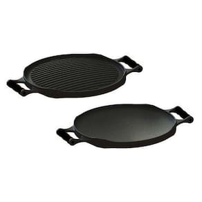 Bifeteira Chapa Redonda Dupla Face Em Ferro Fundido Preto 33 Cm