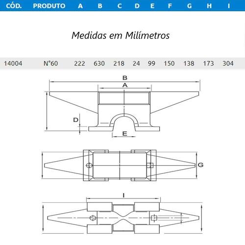 Bigorna Industrial Ferro Fundido Nodular 60Kg 63x21,8x13,8cm