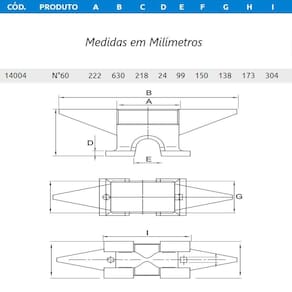01 Bigorna Industrial Ferro Fundido Nodular 60Kg 63x21,8x13,8cm.