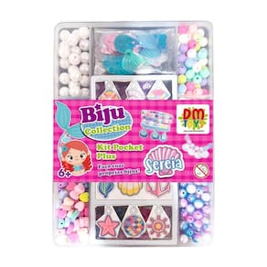 Biju miçangas para fazer pulseirinhas collection kit sereia plus dm toys Cor: colorida A linha biju collection é linda com a linha sereia, brinque de criar suas próprias bijuterias Idade recomendada: Acima de 06 seis anos Conteúdo: - 1 caixa contendo miçangas diversas, pingentes, argolas, 2 fitas e 3 cordões Peso aproximado das miçangas: 63g Composição: plásticos ps e acrílico Avisos importantes: Idade recomendada: a partir de 6 anos de idade. Não recomendado para menores de 3 anos, pois contém partes pequenas que podem ser engolidas ou aspiradas. As cores e medidas podem sofrer pequenas variações entre as imagens e especificações mostradas acima. : 90 dias por defeito de fabricação. A não cobre defeitos ou danos causados pelo uso indevido. Selos de segurança: Inmetro ce-bri/innac 00128-05a nm 300/2002