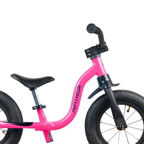 A Balance bike raiada é indicada para crianças a partir de 2 anos ou com altura entre 85cm e 100cm.A entrada perfeita para o mundo das bikes!Pensada para auxiliar no desenvolvimento do equilíbrio, da coordenação bilateral e da percepção de espaço, a Balance não possui pedais ou rodinhas laterais.Crianças que brincam com a Balance desenvolvem equilíbrio estático e dinâmico, e têm muita facilidade para, posteriormente, pedalar uma bike comum – e sem o auxílio de rodinhas laterais.A Balance também age na construção da autoestima e da confiança, pois dá autonomia para a criança.A Balance bike raiada conta com quadro em alumínio, limitador de giro de guidão, selim em PU, cubos de roda com rolamentos e pneus com câmara de ar com válvula angular.Diversão, liberdade e desenvolvimento em uma saudável brincadeira!CARACTERÍSTICAS DO PRODUTO:- Quadro em alumínio;- Garfo e guidão em aço carbono;- Limitador de giro do guidão: A Balance bike raiada possui um mecanismo que impede que o guidão gire além do necessário. O Limitador evita acidentes, permitindo um pedalar com muito mais tranquilidade e segurança.- Pneus com câmara de ar com válvula angular;- Aros em alumínio;- Cubos em alumínio com rolamentos;- Mesa de direção em nylon reforçado;- Selim em PU com regulagem de altura: O selim foi desenvolvido anatomicamente para proporcionar um conforto maior durante o uso. Possui regulagem de altura, assim a bicicleta se ajusta e acompanha o crescimento da criança.- Abraçadeira do selim em alumínio;- Rodas com rolamento: A Balance bike raiada possui rolamento nas rodas, um componente que faz a roda girar mais livremente, com precisão e sem folgas.- Válvula angular: Possui pneus com câmara de ar com válvula angular, facilitando o acesso na hora da calibragem.ESPECIFICAÇÕES TECNICAS:- Marca: Nathor- Modelo: Raiada- Cor: Rosa- Material: Aço Carbono e Alumínio- Altura máxima recomendada: 85cm a 100 cm- Idade: +2 Anos- Tamanho da roda: Aro 12"- Peso máximo recomendado: 21 kg- Registro INMETRO: 004984/2019DIMENSÕES DO PRODUTO:- Comprimento: 58 cm- Largura: 48 cm- Altura Mínima: 30 cm- Altura Máxima: 40 cm- Peso: 4,000 Kg CONTEÚDO DA EMBALAGEM:- 1 Balance Bike- 1 Manual de InstruçõesGARANTIA:- 3 Meses de Garantia Diretamente Com o Fabricante