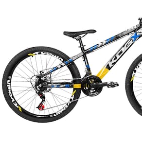 ATENÇÃO SUSPENSÃO ENVIADA É ARO 29 COM CURSO DE 80MM A Dias Bike apresenta ao mercado juntamente com sua marca KOG, seu mais novo lançamento aos amantes de ciclismo e de freeride, a Bicicleta Aro 26 Infantil KOG Full X25 Freio a Disco 21v. Contando com 10 variações de cores para todos os tipos de gosto, quadro confeccionado totalmente em alumínio 6061 para maior leveza e resistência contra o tempo e uso, levando um sistema de transmissão de 21 velocidades. A Bicicleta Aro 26 Infantil KOG Full X25 Freio a Disco 21v é a escolha perfeita para você que gosta de estilo, robustez e performance, tudo isso em uma só bicicleta. Essa jóia do ciclismo você só encontra aqui conosco, da Dias Bike, não fique de fora e venha fazer parte desta história. COMPONENTES DA BIKE - Quadro aro 26 Alumínio KOG Full X25 em Alumínio - Suspensão aro 29 com 80mm de curso - Aros Parede Dupla em Alumínio VMAXX LT - Raios Zincados Pretos - Pneus Aro 26 Com Arame - Camara de ar 26 Bico Grosso - Jogo Direção Ahead Set - Suporte Do guidão 75 a 90mm - Guidão 680 a 700 mm - Canote do Selim em Alumínio - Pedal em Plataforma Comum - Arruela Calço para Ahead Set (3 unidades) - Manopla - Abraçadeira do Selim com Blocagem - Selim - Disco de Freio De 160mm 6 Parafusos - Freio a Disco Mecânico com Pastilha RELAÇÃO (TRANSMISSÃO DA BIKE) - Roda Livre 7 Velocidades - Pedivela Roda tripla em Aço Encapado 3V - Trocador Rapid Fire - Cambio Dianteiro 3V Top Pull - Cambio Traseiro 7V - Cubos Sistema Rosca esferado - Corrente 7 Velocidades - Jogo de Centro Blindado Marca: KOG Bikes