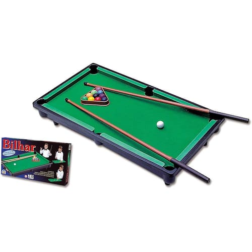 Chame os amigos e comece a brincadeira. O jogo de bilhar é super divertido e você pode jogar com toda a turma. Possui tacos com pontas emborrachadas. Uma brincadeira divertida que vai entreter, divertir e animar adultos e crianças. Entre nessa disputa e mostre quem é o grande vencedor do bilhar.Marca BraskitTipo de jogo de salão SinucaCategoria AmadorComposição/Material Tacos com ponta emborrachadaConteúdo do Jogo Acertar as bolinhas na caçapa, batendo na bola branca primeiroDimensões aproximadas da embalagem (cm) - AxLxP 6x26x46 cmPeso aproximado da embalagem do produto (kg) 80gModelo Bilhar 240-CReferência do Modelo 240-CFornecedor Braskit