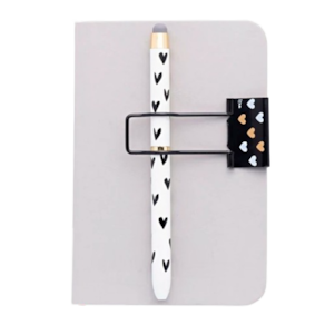 Para prender folhas e segurar canetas, ao mesmo tempo.