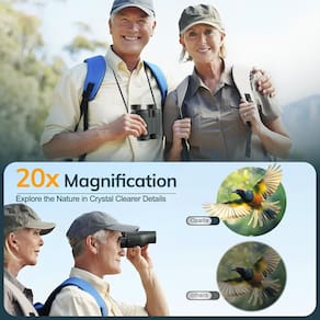 - Binóculos compactos de 20x32 para adultos: nossos binóculos compactos apresentam uma ampliação de 20x e lentes objetivas grandes, permitindo que você explore facilmente os detalhes nítidos do mundo sem qualquer tremor. Em comparação com outros binóculos de 15x, nossos binóculos aumentam a clareza em 30%. Perfeito para observação de pássaros, você e sua família podem usar este binóculo compacto a qualquer momento.