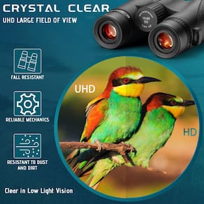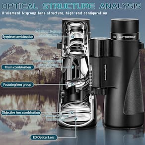 -?Ampliação de 12x e lentes objetivas de 50 mm?Esses binóculos EEDABROS UHD, feitos com elementos de vidro ED premium, oferecem resolução superior, reduzem a aberração cromática e oferecem excepcional fidelidade de cores, nitidez e transmissão de luz para uma visão clara e detalhada.