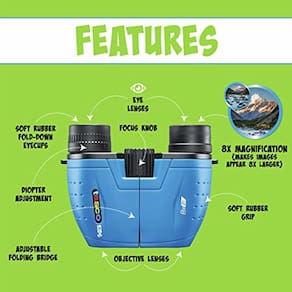 A Tasco Kids cria equipamentos ao ar livre de alta qualidade para que as crianças possam sair e aproveitar o ar livre, esteja você explorando, acampando, caminhando ou até mesmo observando pássaros. Estes binóculos leves e de alta qualidade são fáceis de usar para todas as idades e são feitos com lentes totalmente revestidas para imagens claras e brilhantes. Disponível em preto, azul ou rosa.