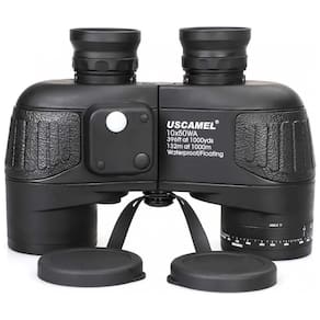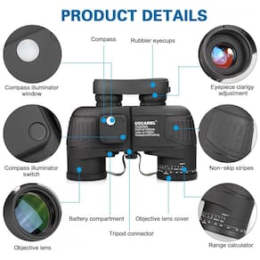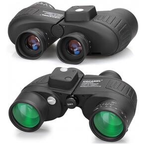 Binóculos marítimos 10x50 Binóculos flutuantes com ampliação de 10x e lente objetiva grande de . O campo de visão é de 120m, com anel de dioptria de 5 dioptrias esquerda e direita. concentrando. As oculares podem ser dobradas facilmente, você pode operá las com óculos. Binóculos BAK4 de alta qualidade Prisma BAK4 de alta refração elimina a luz difusa e melhora a reprodução de cores para 99,99. O revestimento verde FMC reduz a luz refletida na lente objetiva e melhora a transmissão de luz, torna a imagem mais clara e nítida. Binóculos à prova dágua Os binóculos vêm com um design à prova dágua e à prova de nevoeiro cheio de nitrogênio. O ring selado para completa impermeabilidade e flutua na água, então não se preocupe se cair na água Purgado com nitrogênio seco e selado para evitar embaçamento e danos cas pela umidade em todas as condições climáticas, altamente durável. Binóculos com telêmetro e bússola binóculos de visão noturna iluminados bússola embutida para localização de direção, com um telêmetro interno para calcular a distância e o tamanho do objeto diretamente na ocular esquerda. A régua e o compasso iluminados pelo botão de luz, proporcionam o máximo brilho da imagem mesmo em condições de pouca luz não totalmente escuras Marca: Não Informado