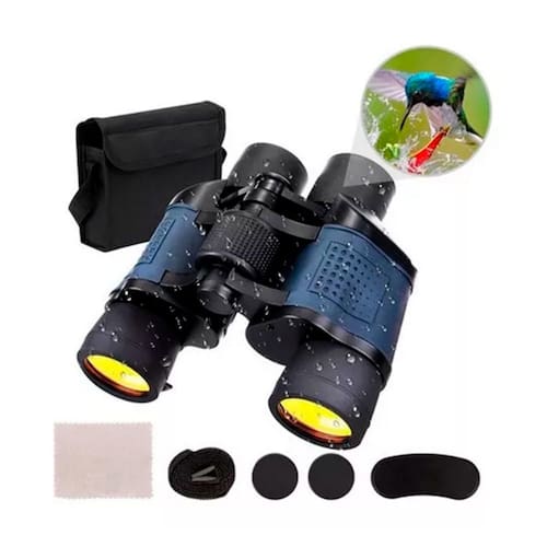 Os binóculos também podem desfrutar de seus eventos esportivos favoritos ou esportes ao ar livre, como esportes radicais, camping, observação de pássaros, turismo, shows, teatros, eventos esportivos, etc. O telescópio é portátil, leve e pode ser facilmente transportado para qualquer lugar. Especificações:\ nAmpliação: 60X\ nCampo de visão: 66/3000m\ nTipo de prisma: lente BAK-4\ nDiâmetro da pupila de saída: 5,0 mm\ nÂngulo: 8,2 graus\ nDistância de foco mais próxima: 5,0 m\ nOlho: 18 mm\ nLente da lente: 36 mm\ NResistente à neblina:\ nMétodo de abordagem:\ nCapa larga:\ nObjetiva e verde filme:\ nScópios embutidos:\ nTamanho da embalagem: 18 × 5,5 × 14,5 cm\ nPeso total: 0,6 kgBinóculos compactos de 60x60: permitem que você veja uma face clara a mais de 3000 m/9840 pés/3280 jardas de distância. Ele foi projetado com um aumento de alta potência de 60X e uma lente objetiva de 35mm. Imagem real e nítida: binóculos leves são cobertos com uma textura de prisma BAK4. Design de coordenadas integrado, ele pode refletir principalmente a luz para manter uma boa imagem, tornando a experiência incrível. Binóculos de visão noturna com pouca luz: os binóculos podem fornecer uma visão clara em condições de pouca luz, mas NÃO NO ESCURO TOTAL. Perfeito para shows noturnos. A proteção antiderrapante, à prova d'água e à prova de neblina pode suportar as condições climáticas mais adversas: evita que umidade, poeira e sujeira entrem nos binóculos. Além disso, a blindagem externa de borracha antiderrapante é resistente a choques, proporcionando uma aderência firme. O melhor presente para pais e filhos: ideal para campistas, caçadores e esportistas. Também é ótimo para crianças observarem golfinhos, aves marinhas, animais, etc. Binóculos de alta definição perfeitos para escalar, caminhar, observar a vida selvagem e a paisagem, etc. Os binóculos também são bons para ótimas peças, shows vocais, partidas de futebol, etc. O pacote inclui: 1 x binóculos telescópicos\ n1 x pano de limpeza\ n1 x prateleira\ n1 x manual de instruções.1 x Sem bolsa tricotada