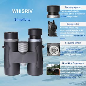 Experimente o mundo com uma clareza impressionante com os binóculos WHISRIV 8x42 HD. Essas ópticas de alto desempenho apresentam óculos BAK-4 HD Prism e Lanthanide ED, aprimorados pela tecnologia de revestimento FBMC, oferecendo clareza de ponta a ponta e maior fidelidade de cores. O design avançado reduz a aberração cromática, a aberração esférica e a dispersão, garantindo uma visão nítida e realista. Construídos para resistir a diversos ambientes, de desertos a florestas tropicais, de montanhas a litorais, esses binóculos são purgados de nitrogênio, à prova d'água, à prova de neblina e à prova de choque. Seja você um ávido observador de pássaros, entusiasta da natureza ou aventureiro ao ar livre, os binóculos WHISRIV 8x42 HD revelam o mundo com detalhes requintados, tornando-os o companheiro perfeito para todas as suas explorações. - Vidro ED de lantanídeo: aberração cromática reduzida, aberração esférica, transmissão de luz aprimorada, concede brilho excepcional, ótima fidelidade de cores e também mantém alto desempenho em condições de pouca luz. - Prisma HD e FMC avançado: Nosso avançado prisma Bak-4 aproveita o revestimento dielétrico, que reflete mais de 99% da luz, e nosso avançado FMC usa revestimento antirreflexo de banda larga em todas as superfícies ar-vidro, o que garante a transmissão geral da luz em 85%, oferece brilho ideal e cores reais em todo o espectro de luz. - Impermeável com nitrogênio purgado: o uso de gás de inserção e estrutura de anel de vedação mantém a pressão da cavidade, evita o embaçamento e a hidratação de dentro, e a ausência de oxigênio ajuda a prevenir a corrosão do vidro e dos revestimentos, tornando-a adequada para condições extremas. Design ergonômico: a cavidade em liga de alumínio e o corpo blindado de borracha apresentam uma textura rica, proporcionando aderência antiderrapante. A sensação de amortecimento calibrado durante o ajuste de foco proporciona uma sensação de amortecimento alegre e rápida experiência de ajuste, por favor, aproveite. - Conforto excepcional: campo de visão superamplo de 7°, ocular grande de 24 mm, ajuste de dioptria de -5° a 5°, relevo ocular de 18 mm, diâmetro da pupila de saída de 5,8 mm, tudo isso oferece conforto excepcional durante o uso prolongado. - Uso versátil: use os binóculos premium para caça, observação de pássaros, esportes, golfe, observação de estrelas, viagens, acampamento e caminhadas, cruzeiros, etc., revele o mundo com mais diversão.