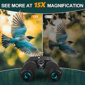 Binóculos compactos 15 x 32 para adultos e crianças: Binóculos pequenos WOZEL para observação de pássaros - Binóculos de alta potência para viagens, caminhadas, esportes - Binóculos potentes com vistas brilhantes e grandes Especificações: Binóculos compactos 15 x 32 para adultos e crianças: Ampliação: 15x Diâmetro da lente objetiva: 32 mm Diâmetro da ocular: 18 mm Tipo de prisma: BAK4 Tipo de revestimento: FMC Peso: 338,5 g/0,74 lb Cor: Preto e verde Descrição: binóculos de observação de pássaros, binóculos de caça, binóculos de viagem, binóculos de teatro, binóculos de concerto, binóculos esportivos, binóculos de caminhada, binóculos compactos, binóculos pequenos, binóculos de alta potência, binóculos de pássaros para adultos Conteúdo da embalagem: 1 binóculo compacto de 38 x 81 cm. 1 tampa ocular. 1 manual do utilizador (idioma português não garantido). 1 pano de limpeza de vidro. 1 bolsa de transporte. - Binóculos potentes 15x, lente objetiva grande de 30 mm? Os binóculos compactos têm ampliação de 15x e lentes objetivas grandes de 30 mm, que permitem que você observe imagens brilhantes e completas mesmo a uma distância maior. Os binóculos de observação de pássaros podem fornecer 215 campos de visão a 1000 metros de distância para imagens de observação mais coloridas. - ?Revestimento e lentes FMC e BAK-4 de alta qualidade? Os pequenos binóculos são equipados com revestimento FMC e lentes BAK-4, que tornam a taxa de transmissão de luz de até 99,5%, o que melhora muito o brilho e a clareza da imagem e fornece um prazer visual confortável para cada ângulo de visualização. Você pode obter experiência extrema em esportes e shows. - ?Óculos ajustáveis e botão de foco central? Os binóculos de alta potência com um botão de foco central que permite ajustar facilmente o foco para o que funciona melhor para você com base na paralaxe dos binóculos. A ocular direita também tem uma função de microajuste que permite ajustar o foco. Os protetores oculares ajustáveis podem ser facilmente girados para cima e para baixo e funcionam bem para pessoas com e sem óculos. - ?Compacto e dobrável, design ergonômico para mais conforto? Os binóculos compactos pesam apenas 300 g e o design dobrável pode ser facilmente transportado e colocado na bolsa para viagens. O design leve e ergonômico o torna mais confortável de segurar e pode ser facilmente agarrado e utilizado com uma mão. - ?Cenas de uso amplo, adultos e crianças podem usar? Os binóculos para adultos também são adequados para crianças, idosos e toda a família pode usá-los. Os binóculos potentes são adequados para uma variedade de diferentes cenas de uso, observação de pássaros, caça, viagens, caminhadas, competições esportivas, shows, cruzeiros no Alasca e muito mais. Também pode ser utilizado como presente de aniversário, presente de Ação de Graças ou presente de Natal para quem você ama.