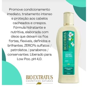 O Condicionador Bio Extratus Cachos & Crespos possui uma fórmula rica em rícino e abissínia, dois óleos unidos para dar força, flexibilidade, vitalidade e beleza aos fios. Promove o condicionamento imediato, tratamento intenso e proteção aos cabelos cacheados e crespos. Sua fórmula hidratante e nutritiva deixa os fios fortes, flexíveis, definidos e brilhantes.