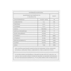 O biocolin collagen se propõe a ser o suplemento mais completo do mundo para estética e beleza, contendo em um único sachê dez nutrientes das marcas mais respeitadas do mundo em seu segmento. Com isso, a central nutrition cumpre o seu propósito claro de criar master soluções em forma de produtos para que nutricionistas e profissionais da saúde possam usar como estratégias para melhorar a saúde, beleza e a autoestima de seus pacientes. Biocolin collagen é o colágeno dos colágenos, porque ele é o resultado da unificação de 10 ingredientes fundamentais para transformar sua pele. É o único colágeno do mercado que contém em uma única porção colágeno, enxofre, ácido hialurônico, hidroxitirosol, silício orgânico, vitaminas antioxidantes e minerais, esses ativos em conjunto podem proporcionar um tratamento estético de dentro para fora que auxiliarão no processo de antienvelhecimento, melhora da qualidade e aparência da pele. O conjunto de ativos são responsáveis pela produção de novas células, preenchimento e elasticidade da pele. Sendo assim, deixa a pele mais hidratada e saudável, além do envelhecimento e estímulos extrínsecos como radiação ultravioleta solar e poluentes do ar. Seus ativos inibem os marcadores inflamatórios, previne e reduz a hiperpigmentação pós-inflamatória presente na pele acneica, além de aumentar os níveis de glutationa, um poderoso antioxidante. Benefícios: - maior firmeza e suavidade; - combate às rugas, flacidez e ressecamento da pele; - melhora da textura e elasticidade. Sugestão de uso: adicione um sachê 7g em 200ml de água e misture até a total homogeneização e beba imediatamente. Recomenda-se um sachê, duas vezes ao dia, antes das principais refeições. Excipientes: acidulante ácido cítrico, aroma idêntico ao natural de tangerina, corante natural urucum, antiumectante dióxido de silício, estearato de magnésio, edulcorantes glicosídeos de steviol e maltitol.
