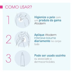 ATODERM INTENSIVE BAUME BIODERMA BÁLSAMO HIDRATANTE ULTRA SUAVE Peles sensíveis muito secas e irritadas. Restaura o equilíbrio da camada lipídica. Anti-Coceira. Hipoalergênico. Sem parabenos. Sem perf