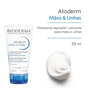 Creme hidratante para mãos e unhas. Bioderma Atoderm Mains & Ongles hidrata, nutre e repara intensamente, proporcionando sensação de conforto e suavidade.