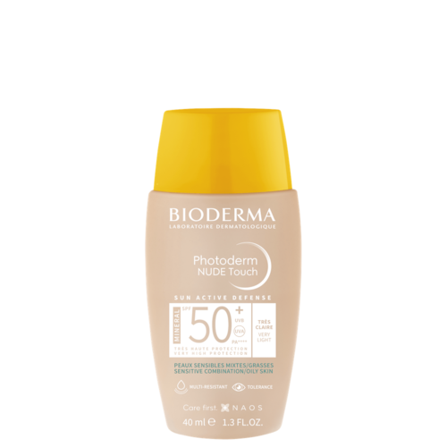 Protetor solar mineral com cor para peles oleosas. Bioderma Photoderm Nude Touch uniformiza e ilumina o rosto com cobertura de efeito natural e proteção UVA / UVB 100% física e mineral por até 8 horas.