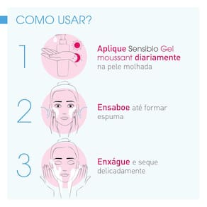 SENSIBIO GEL MOUSSANT BIODERMA GEL DE LIMPEZA PELES SENSÍVEIS Gel de Limpeza Suave para peles Sensíveis Acalma e hidrata Sem sabão Sem perfume Sem parabenos Sem conservantes Sem corantes pH fisiológic