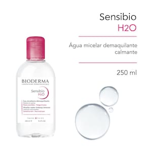SENSIBIO H2O BIODERMA SOLUÇÃO MICELAR DEMAQUILANTE A higiene micelar diária de referência que limpa, descongestiona, acalma, refresca e remove a maquiagem do rosto e olhos da pele sensível e intoleran