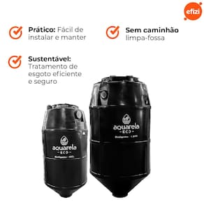 O Biodigestor 1.800L/Dia Aquarela Eco é uma solução sustentável e eficiente para o tratamento de esgoto doméstico. Ideal para residências, comércios, fazendas, sítios, fábricas ou qualquer local sem acesso à rede de esgoto, ou que deseja melhorar o tratamento atual. Além disso, o Biodigestor 1.800L/dia Aquarela Eco possui um sistema de retirada de lodo por diferença de carga hidráulica que possibilita uma manutenção simples e segura sem necessidade de uso de equipamentos, bombas, caminhão limpa-fossa ou mesmo mão de obra específica.