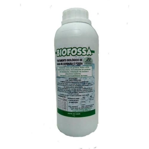 Biofossa produto de alto rendimento, 20 aplicações/20 semanas experimente o novo com tampa dosadora, duas tampas com produto biofossa equivale a uma aplicação 50ml baixa dosagem. Reduz limpeza mecânica de alto custo. Para fossa e caixa de gordura residenciais são necessários 50ml de produto uma vez por semana 100% natural e não agride o meio ambiente. Evita mau cheiro, proliferação de insetos e pequenos roedores. Produto é composto por micro/macro nutrientes. Reduz gordura das paredes e tubulações do sistema. Aumenta eficiência de etes e reduz a dbo e dqo. Caixa de gordura e fossas que nunca utilizaram ou cessaram o uso do produto devem dosar produto em choque. Ete e lagoas as dosagens devem ser consultadas. Neste anuncio o valor total é para embalagem de 3 litros, mas fornecemos embalagens maiores. Produto pode ser utilizado em restaurantes, hotéis, casas, indústrias, etc. . . Compostagem: deve-se utilizar 100 ml para cada 1 tonelada de material da compostagem emitimos nfe aplicação: produto biofossa pode ser aplicado diretamente na fossa ou caixa de gordura. Caso utilize como ponto de acesso o vaso sanitário, deverá acionar a descarga para que o produto seja direcionado a fossa. Para os outros pontos de acesso cada aplicação do produto biofossa poderá ser diluído em até um litro de água. Aplicação do produto poderá ser efetuada a noite ou no menor período de utilização do local. Existem alguns casos que serão necessários elaboração de dosagens especiais para o tratamento corretivo do sistema. Favor informar o problema que está ocorrendo no sistema. Durante o tratamento evitar o descarte de desinfetantes concentrados diretamente na fossa ou caixa de gordura. Marca: Biofossa