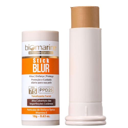 A Base Stick Blur FPS 75, da Biomarine, proporciona um disfarce óptico que diminui a aparência dos poros visíveis, manchas e linhas finas para deixar um aspecto mais suave. Tudo isso com tons variados que deixam o rosto completamente uniforme.