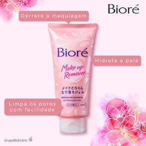 Gel demaquilante para todos os tipos de pele. Bioré Make Up Remover limpa completamente os poros com facilidade, sem a necessidade de “esfregar” muito o rosto.