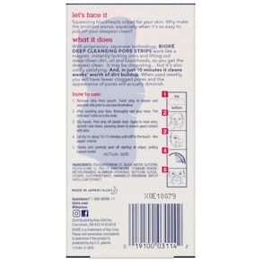 Práticas e fáceis de usar, essas tiras de poros podem ser usadas 1x por semana para uma limpeza mais profunda. Ao contrário de outras pretensas tiras de poros, somente as tiras de limpeza profunda de poros biore usam tecnologia c-bond patenteada para se ligar a cravos e impurezas, não à pele.