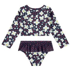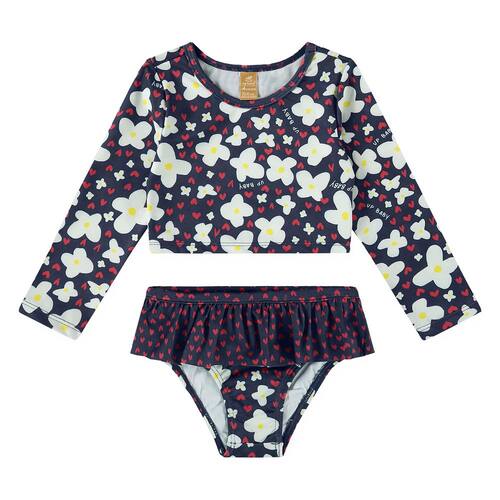 O Biquíni Bebê e Infantil Cropped Manga Longa para meninas com estampa de flores é perfeito. Confeccionado em Malha Poliéster UV FPS +50. Possui mangas longas para maior proteção, para as brincadeiras na praia e piscina serem só diversão sem preocupação.