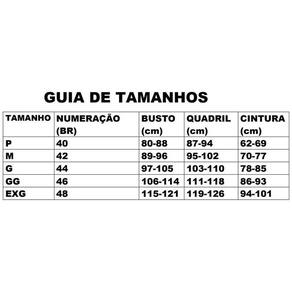Composição top/bustiê: 84,9% poliamida e 15,1% elastano.