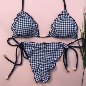 Biquíni Cortininha Quadriculado, Calcinha Empina Bumbum e Amarra lateral