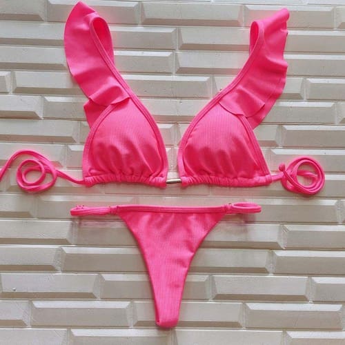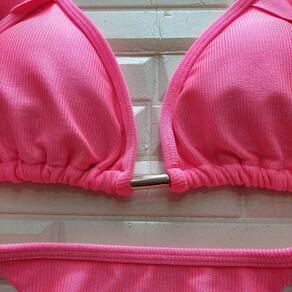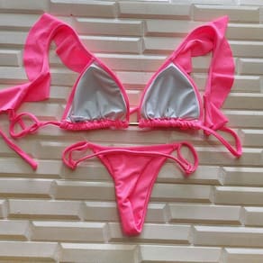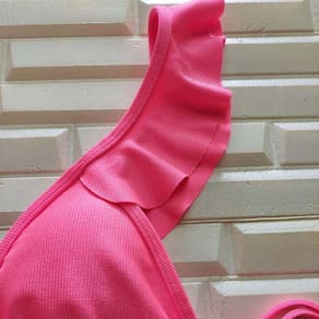 Parte de cima: Cortininha clássico com peça no centro e Babado na alça