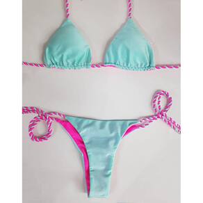 Biquíni Cortininha Dupla Face com Calcinha De Amarrar e Empina Bum Bum - Azul Petróleo - M