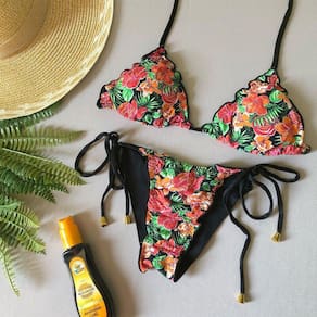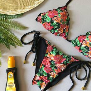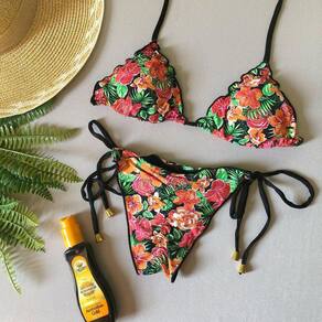 Biquíni Cortininha Lindas estampas, calcinha empina bumbum e amarra na lateral