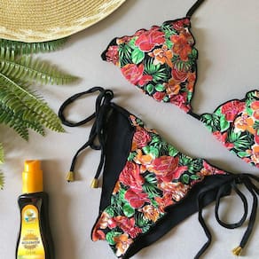 Biquíni Cortininha Lindas estampas, calcinha empina bumbum e amarra na lateral