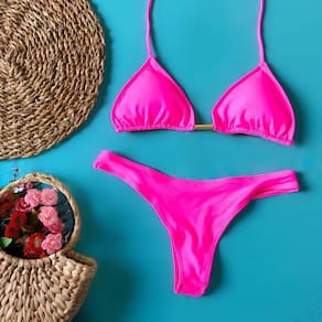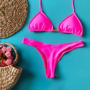 Biquíni Cortininha Pink Liso, Calcinha fio Dental