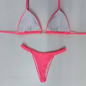 Biquíni Cortininha Regulável Canelado 100239 - Rosa - G