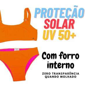 Biquini Cropped Argolas Proteção Solar UV 50 Amarração Praia - Laranja - PP