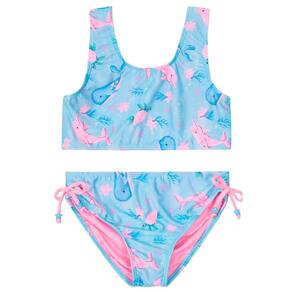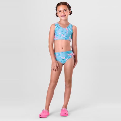 Biquíni infantil menina beach wear composto por top e calcinha em malha UV, sua pequena pronta para curtir os dias ensolarados com estilo e conforto. O top possui alças largas, decote U e estampa rotativa, já a calcinha também com estampa rotativa conta com laços laterais com miçangas. Fabricado em malha UV de alta qualidade, este biquíni proporciona uma camada extra de proteção contra os raios solares, garantindo que sua pequena aproveite o sol com segurança.