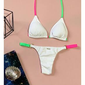 Este biquíni é a escolha perfeita para quem busca um visual moderno e elegante, aliado ao conforto. Com o modelo cortininha clássico, o top conta com bojo que realça e oferece sustentação suave. Sua textura diferenciada acrescenta um toque de sofisticação, destacando o estilo e a qualidade do tecido, que foi cuidadosamente selecionado para garantir durabilidade e maciez em contato com a pele. A calcinha de tiras laterais proporciona um ajuste perfeito e confortável, valorizando as curvas de forma delicada. O forro interno evita transparências indesejadas, garantindo segurança e confiança para aproveitar os momentos na praia ou na piscina. A combinação do design texturizado com a modelagem clássica e versátil faz desse conjunto uma escolha elegante e moderna para qualquer ocasião. Sutiã com Bojo Sutiã 93% POLIESTER 07% ELASTANO