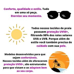 O biquíni é confeccionado com tecido que também possui proteção UV50+ filtrando 98% dos raios UVA e UVB, e é inteiramente forrado, com tecido próprio para que não entre areia entre o tecido e o forro. O tecido também é antibacteriano, o que inibe a proliferação de fungos e bactérias que causam odores desagradáveis, garantindo higiene, conforto e frescor.