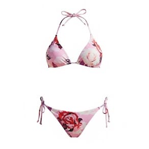 Biquíni feminino com bojo, estampa tropical vibrante e modelo cortininha. Possui amarrações laterais e no pescoço para ajuste perfeito. Confeccionado em tecido leve e confortável, ideal para praia ou piscina. Valoriza as curvas e garante segurança e sustentação.