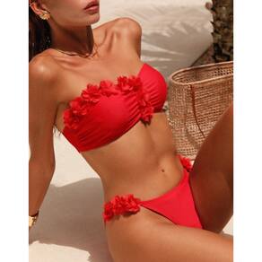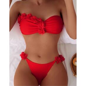 Lindo Biquini, de alta qualidade, com bojo de preenchimento removível, sutiã sem armação, decote bandeau, franzido floral 3D. Aproveite o verão 2026, férias, praia e piscina, com esse biquini de alta elasticidade, estilo sensual. Composição do tecido: 80% poliamida e 20% elastano. Cor: Vermelho Tamanhos: P, M e G