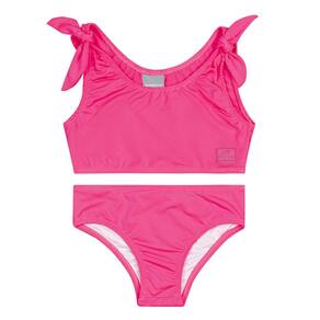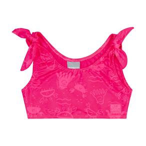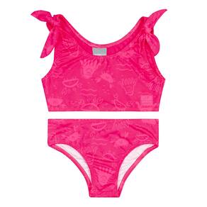Descubra a magia do verão com o adorável biquíni infantil revela estampa na água com proteção UV 50+ pink neon Quimby! Este conjunto encantador apresenta um top com lacinhos nos ombros e uma calcinha, ambos lisos. Quando mergulhado na água, uma estampa encantadora ganha vida, revelando seus motivos marinhos de maneira mágica. Perfeito para dias de diversão ao sol e brincadeiras na praia, oferece não apenas estilo, mas também conforto e proteção para sua pequena exploradora.